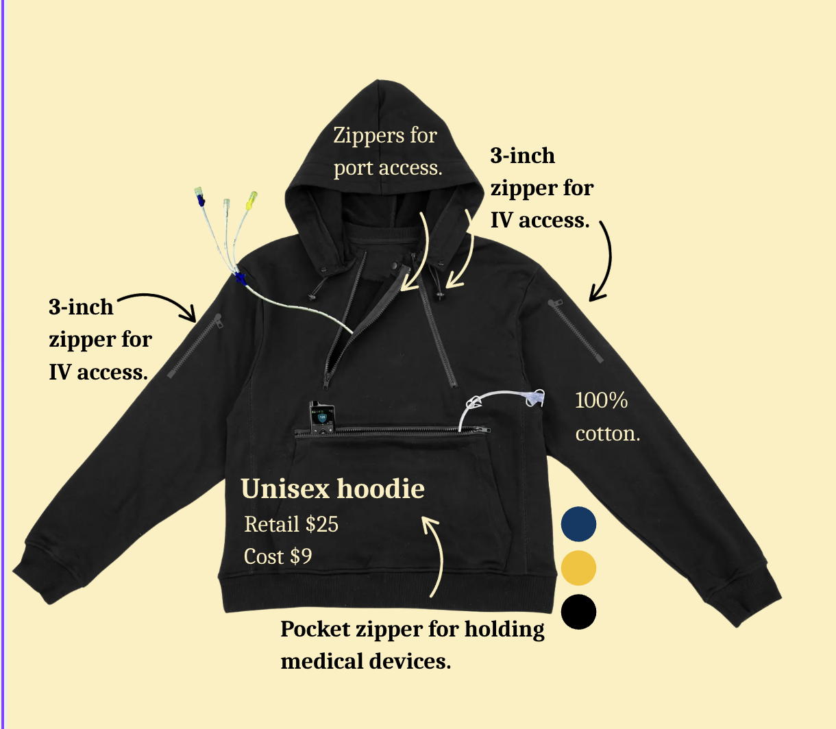 This project began with a personal connection to the problem I was already interested in researching. Through my own experience watching my sister fight pediatric cancer, I saw firsthand how deeply clothing impacts comfort, confidence, and identity during medical treatment. What should be a simple daily choice, such as getting dressed, can become physically difficult and emotionally overwhelming. Clothing becomes medical rather than expressive, yet it is still not medically functional.